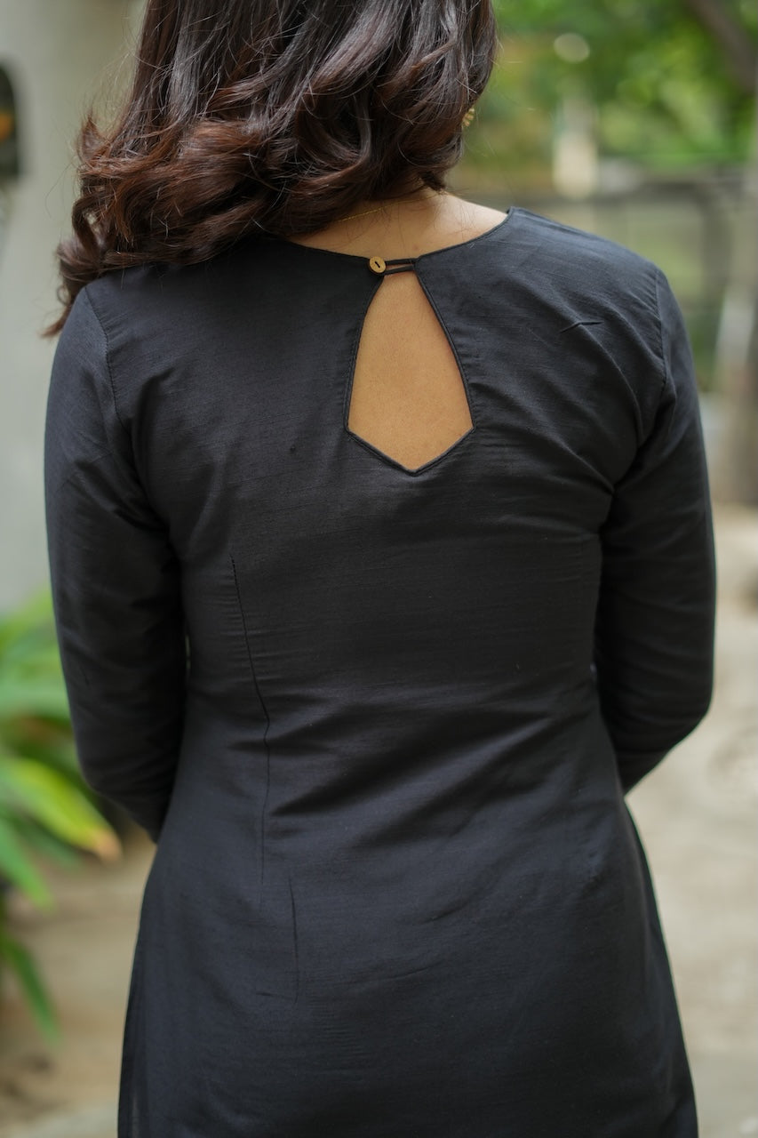 The Diya Black Co-Ord Set is crafted from premium Chanderi slub, featuring a straight-fit kurta with side slits and a matching pant. Its solid black tone and clean V-neckline lend an air of timeless elegance, making it a versatile choice for office wear, casual outings, and daily ethnic dressing. A wardrobe essential that balances comfort and effortless chic.