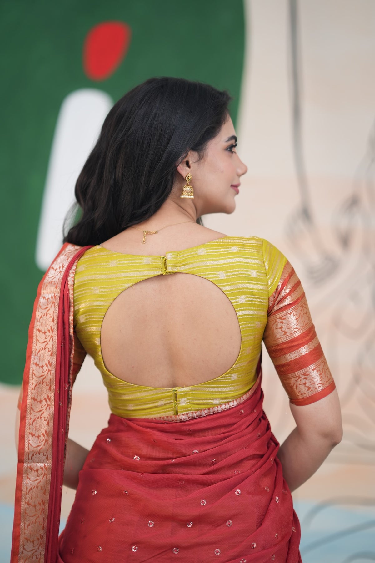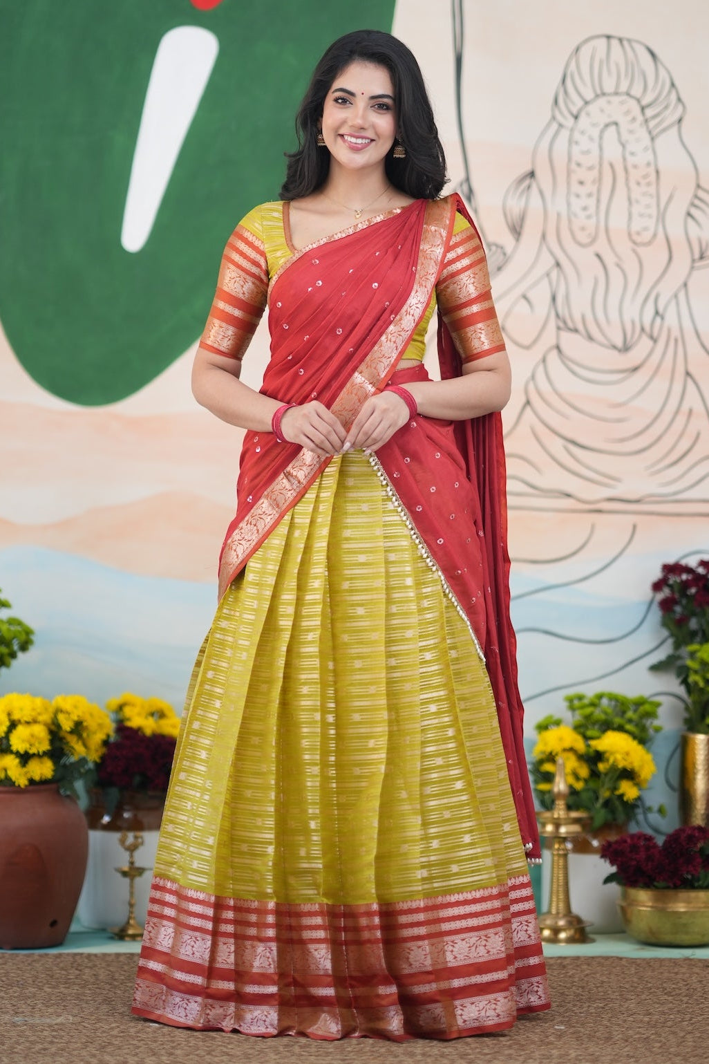 Henna Yellow and Rust Orange Organza Half saree
