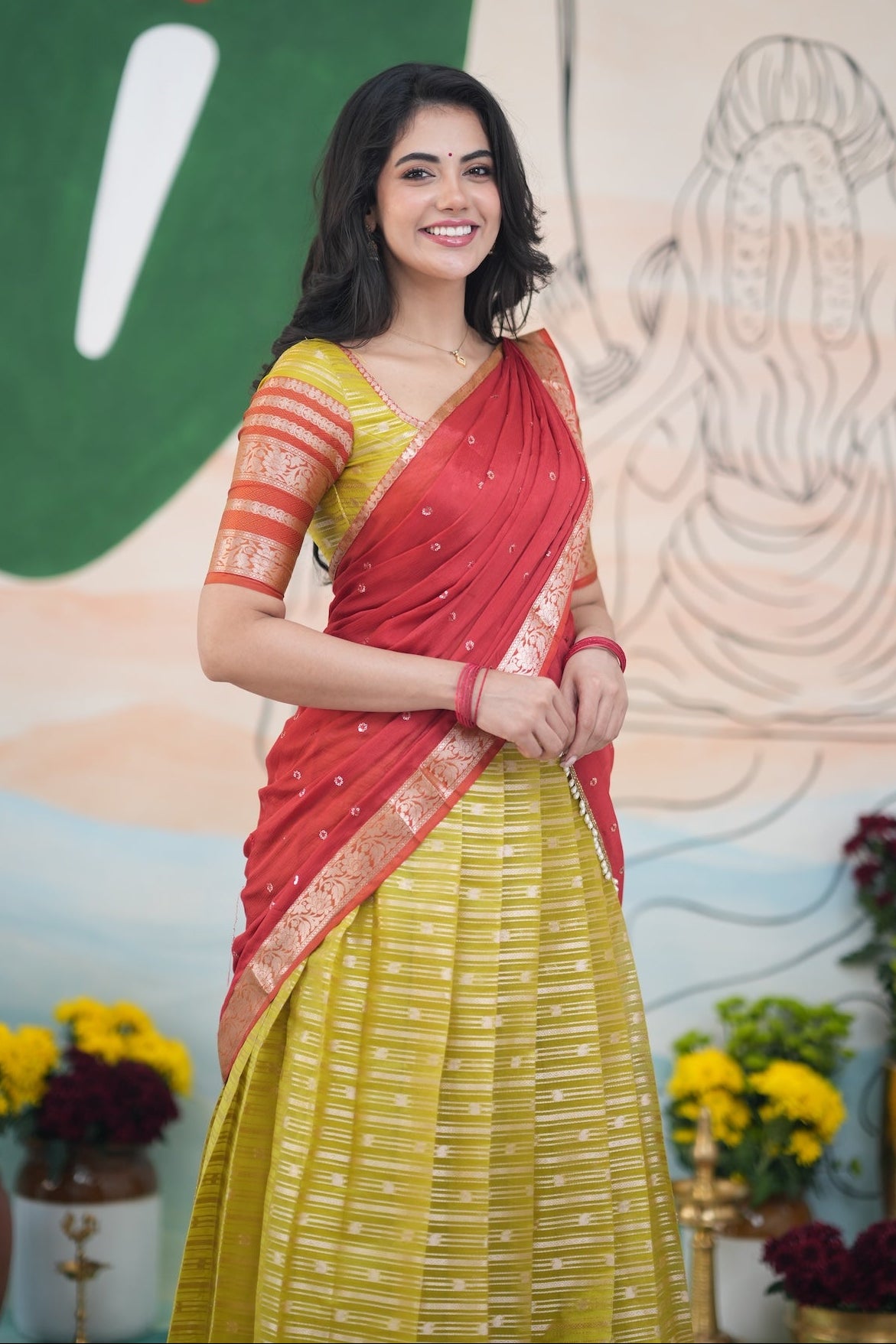 Izhaiyini Halfsaree - Henna yellow and Rust Orange