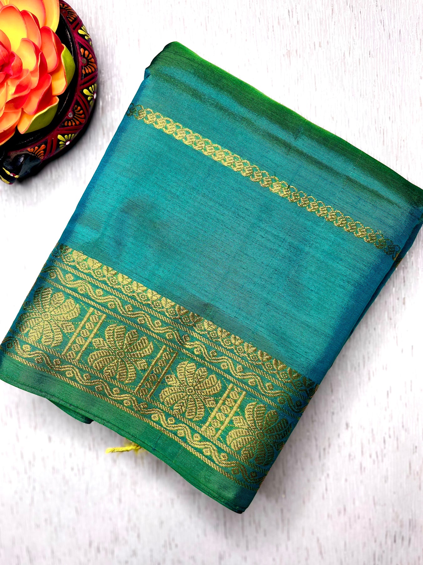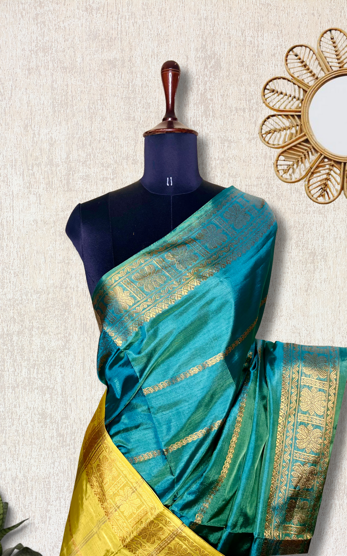 Handwoven Art Silk Saree - Eastern Blue + Earls Green