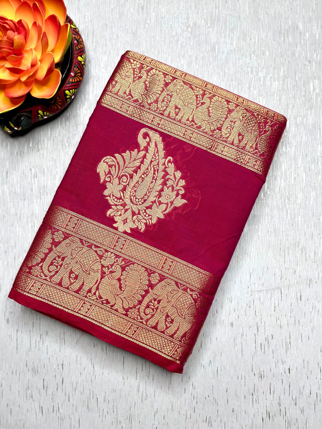 Kanchi cotton sarees are the woven signature pieces crafted by the weavers of Chettinad Region, Tamil Nadu.