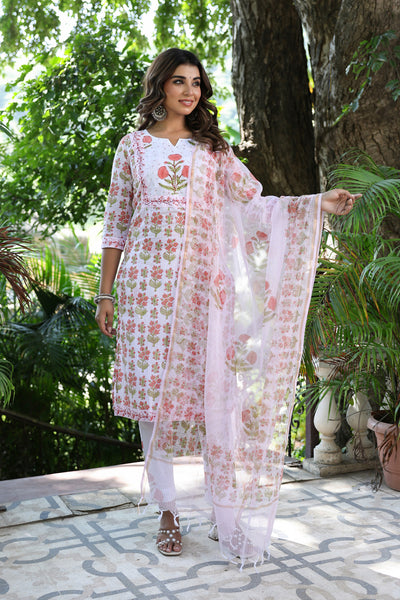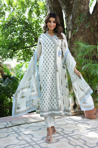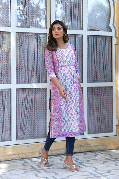 Green Yellow Buti Floral Pintucks Panel Kurti