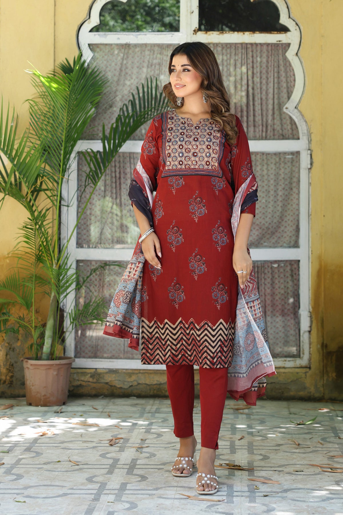 Material: Top- Cotton, Bottom- Cotton, Dupatta-Mul Cotton