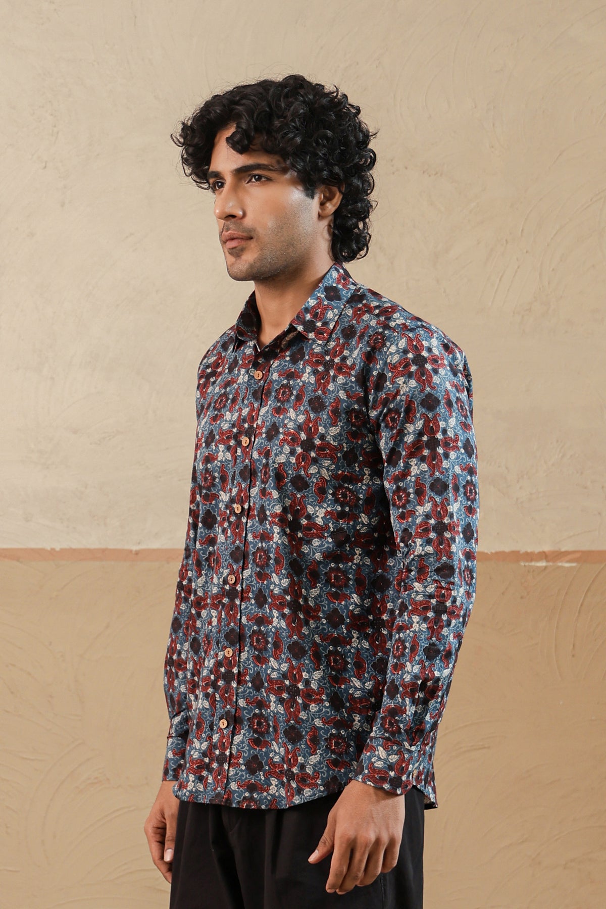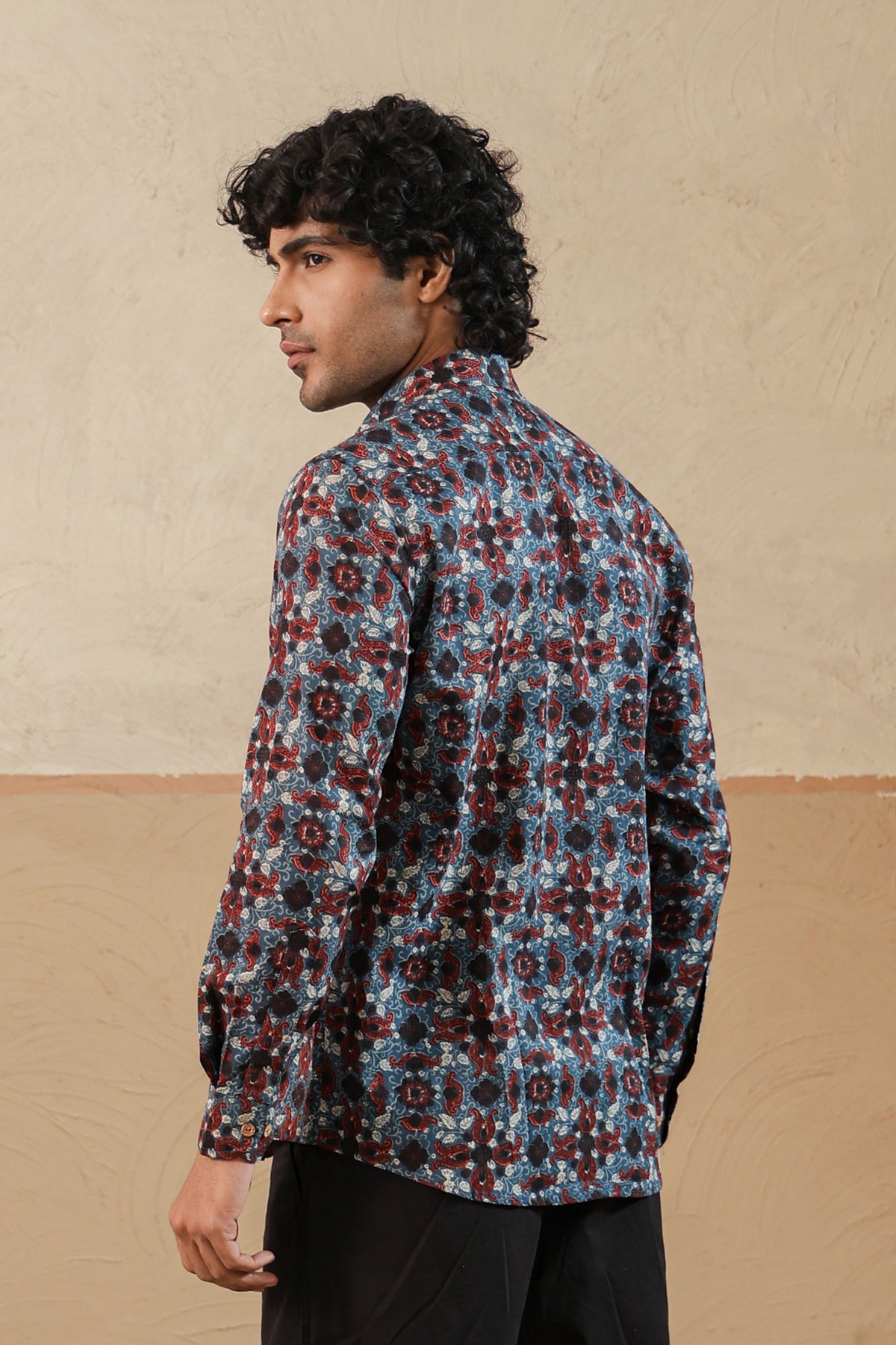 Black Blue Ajrakh Full Sleeve Shirt