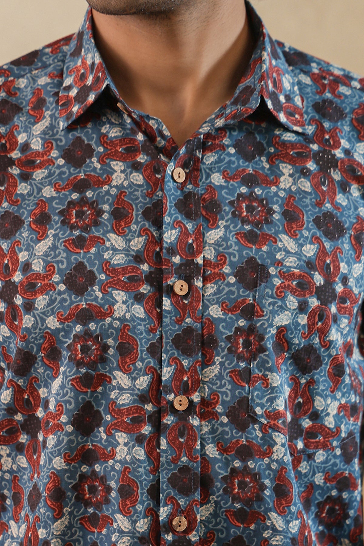 Description: Look handsome and stay comfortable in this full-sleeved shirt featured with regular spread collar. Fashioned from cotton fabric, this shirt comes with intricate prints all over.