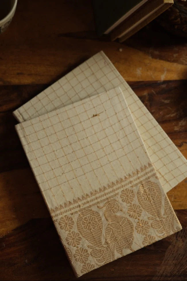 Discover the perfect blend of elegance and tradition with our exquisite aesthetic notebook, featuring a stunning sungudi handloom cotton saree as its outer cover. Crafted for those who appreciate artistry and sophistication.