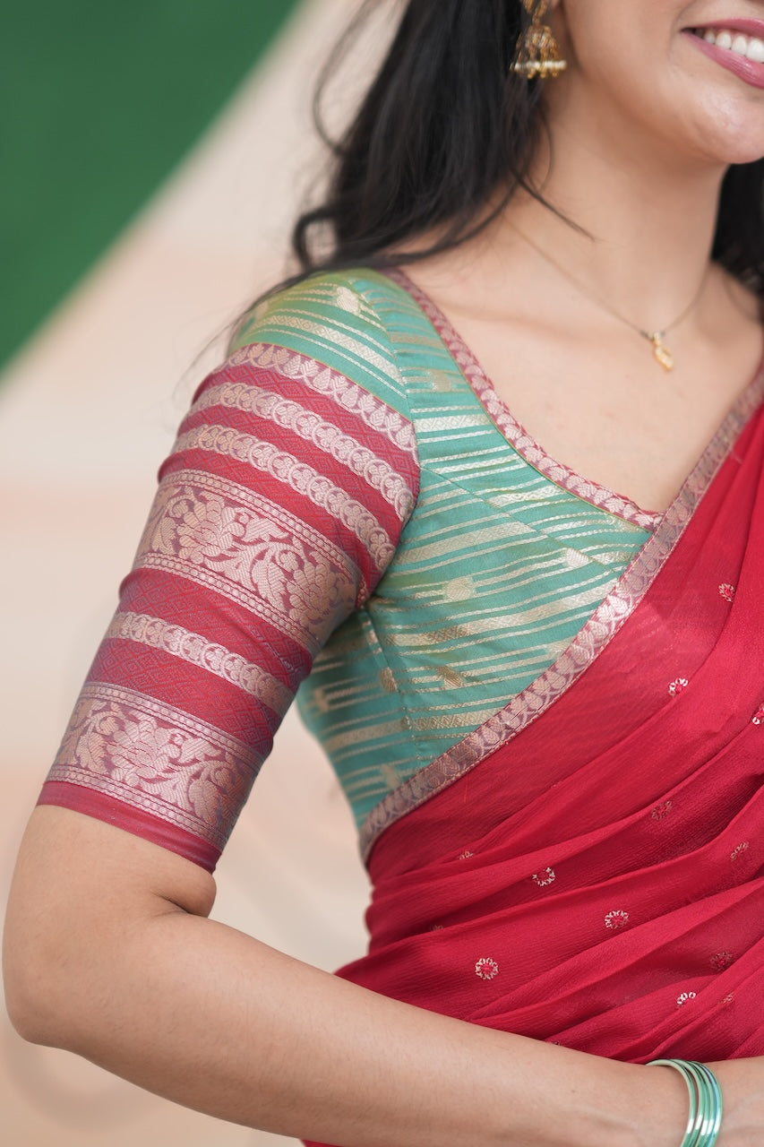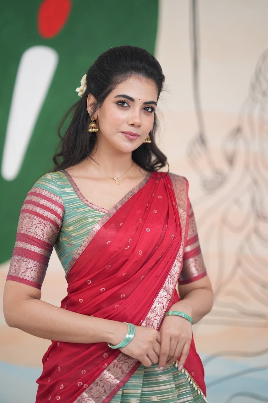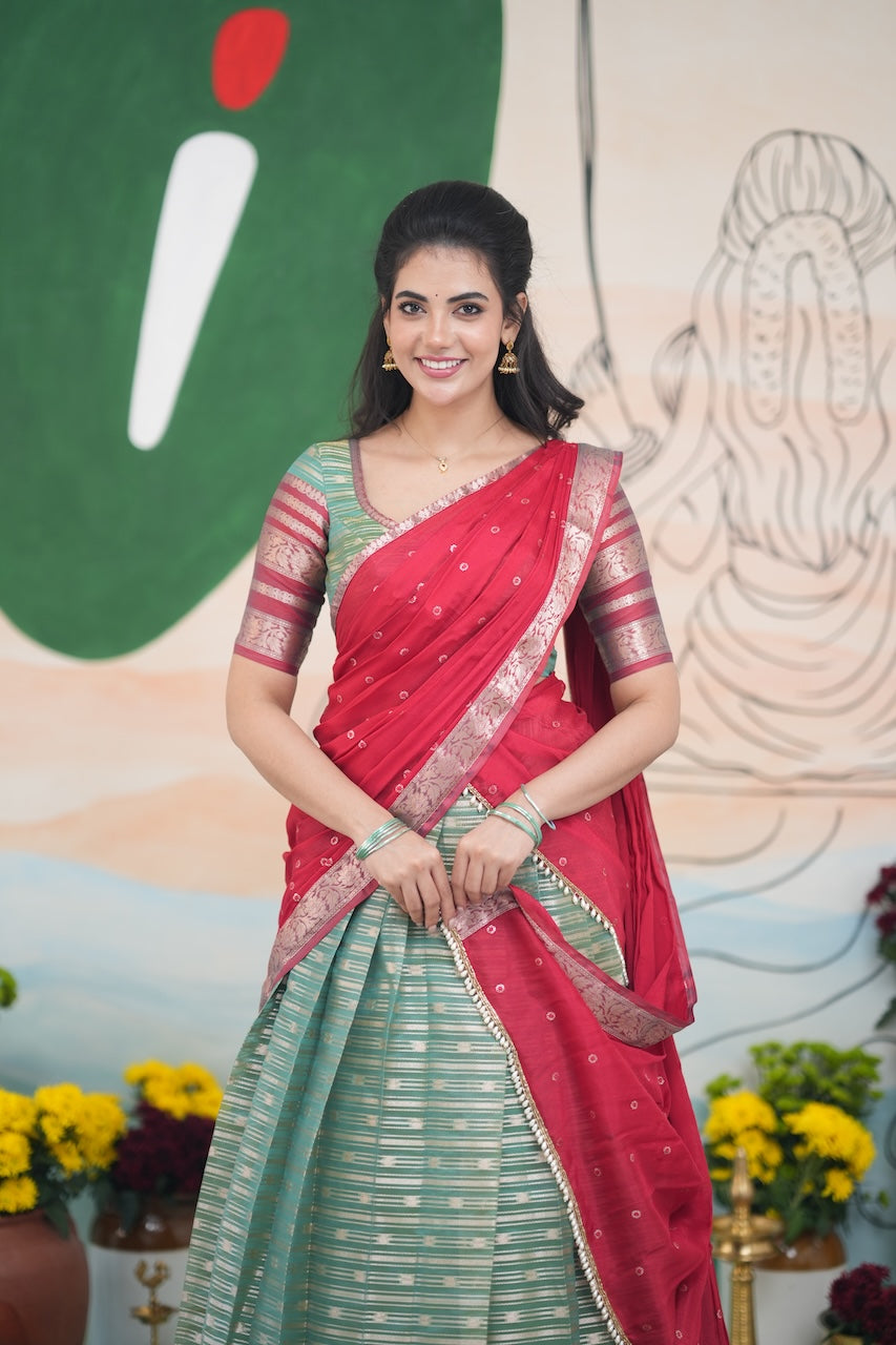 Izhaiyini Halfsaree - Two tone dark Green and Red