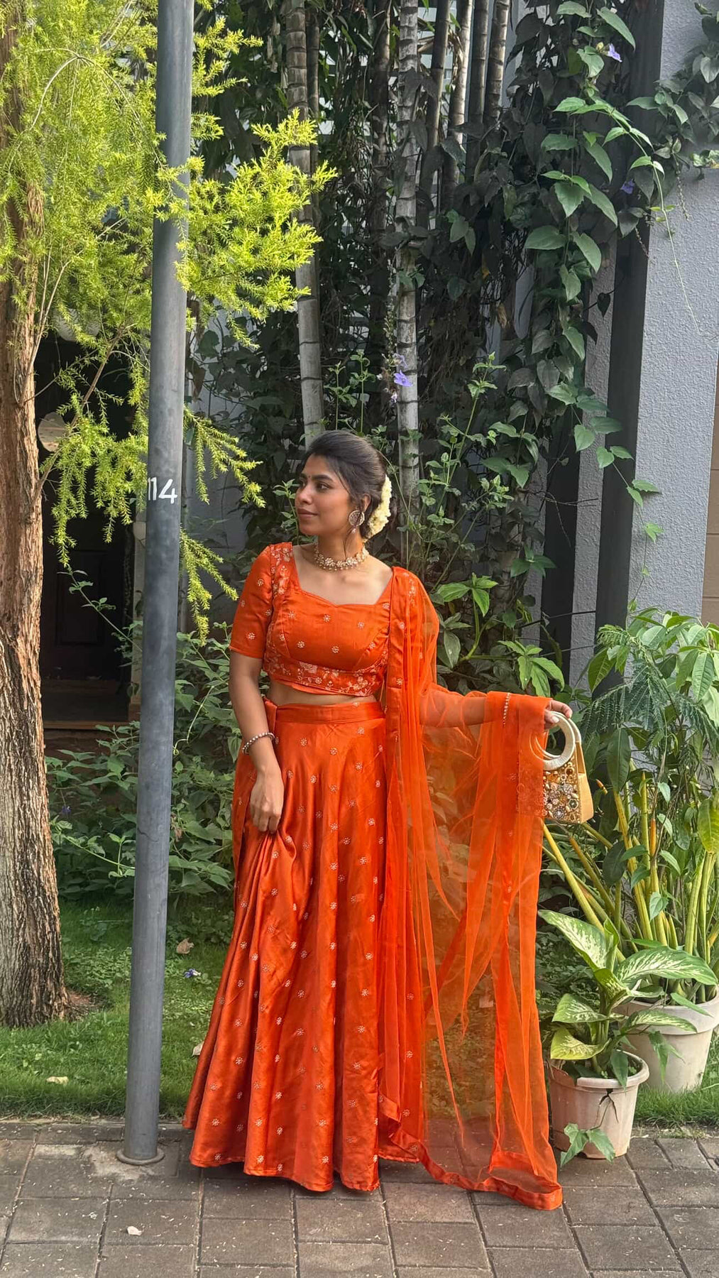 Radiant Horizon – Burnt Orange Silk Lehenga Set