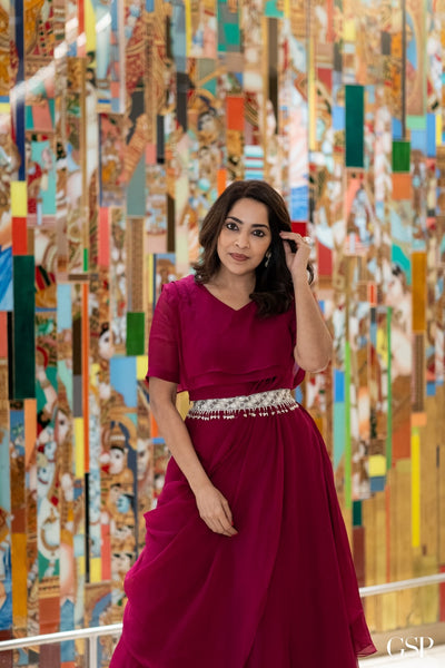 Pranazhili Maroon Kurta Set