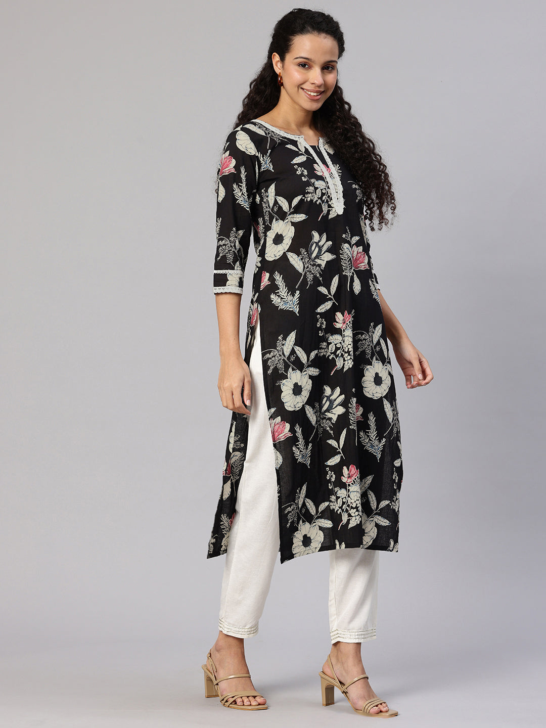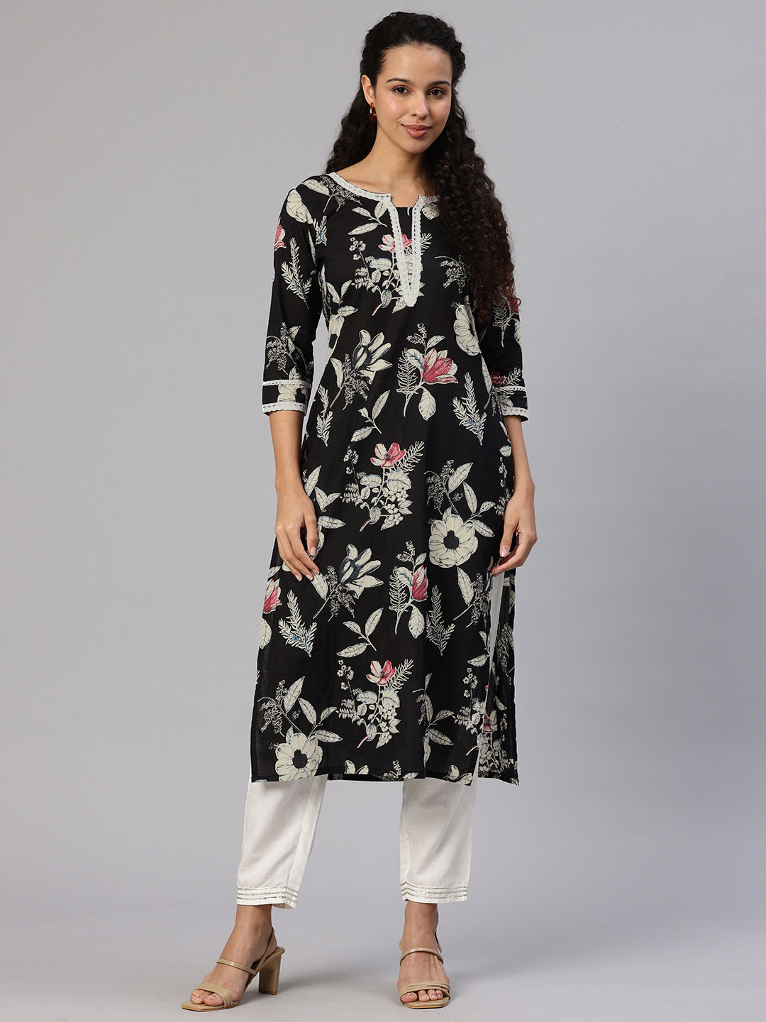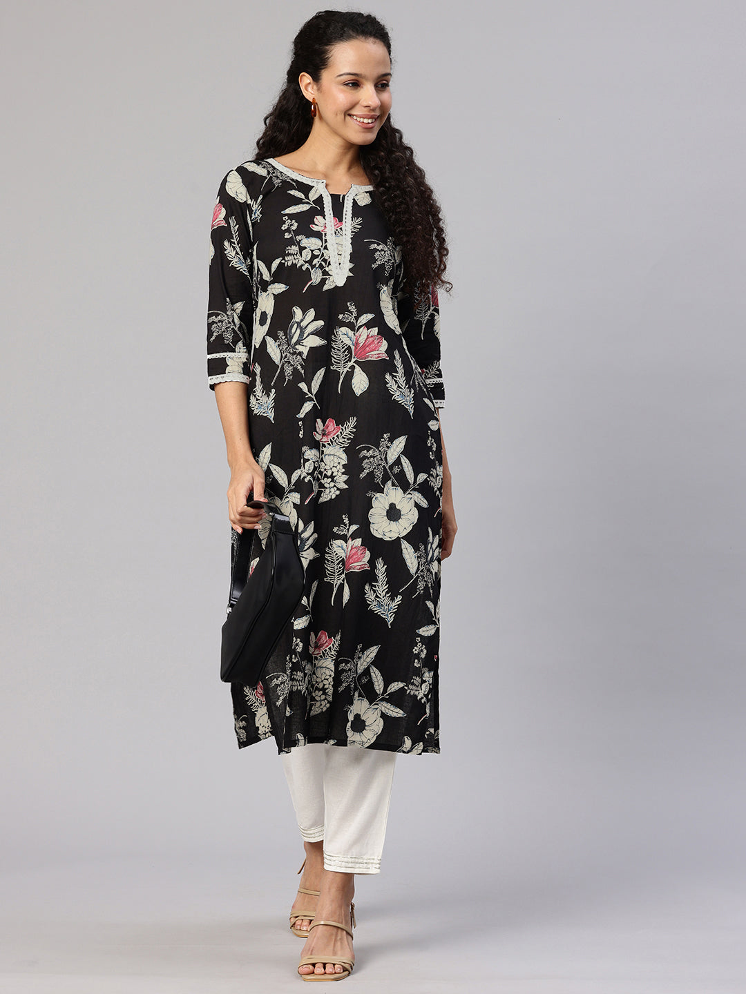Black White A-Line Kurta