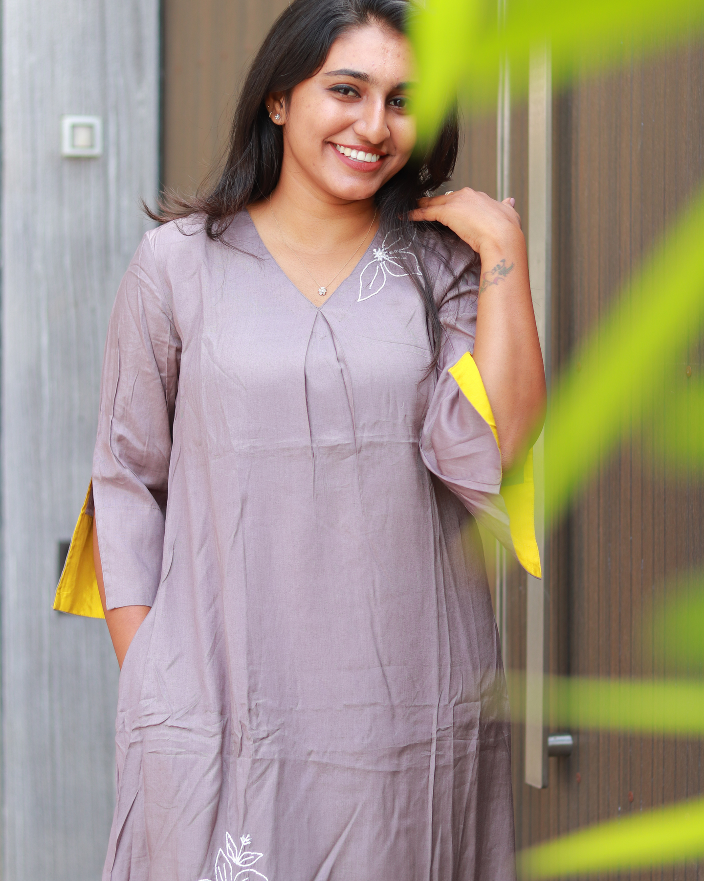 ✔ 3/4 sleeves – With contrast green patch inside the sleeves