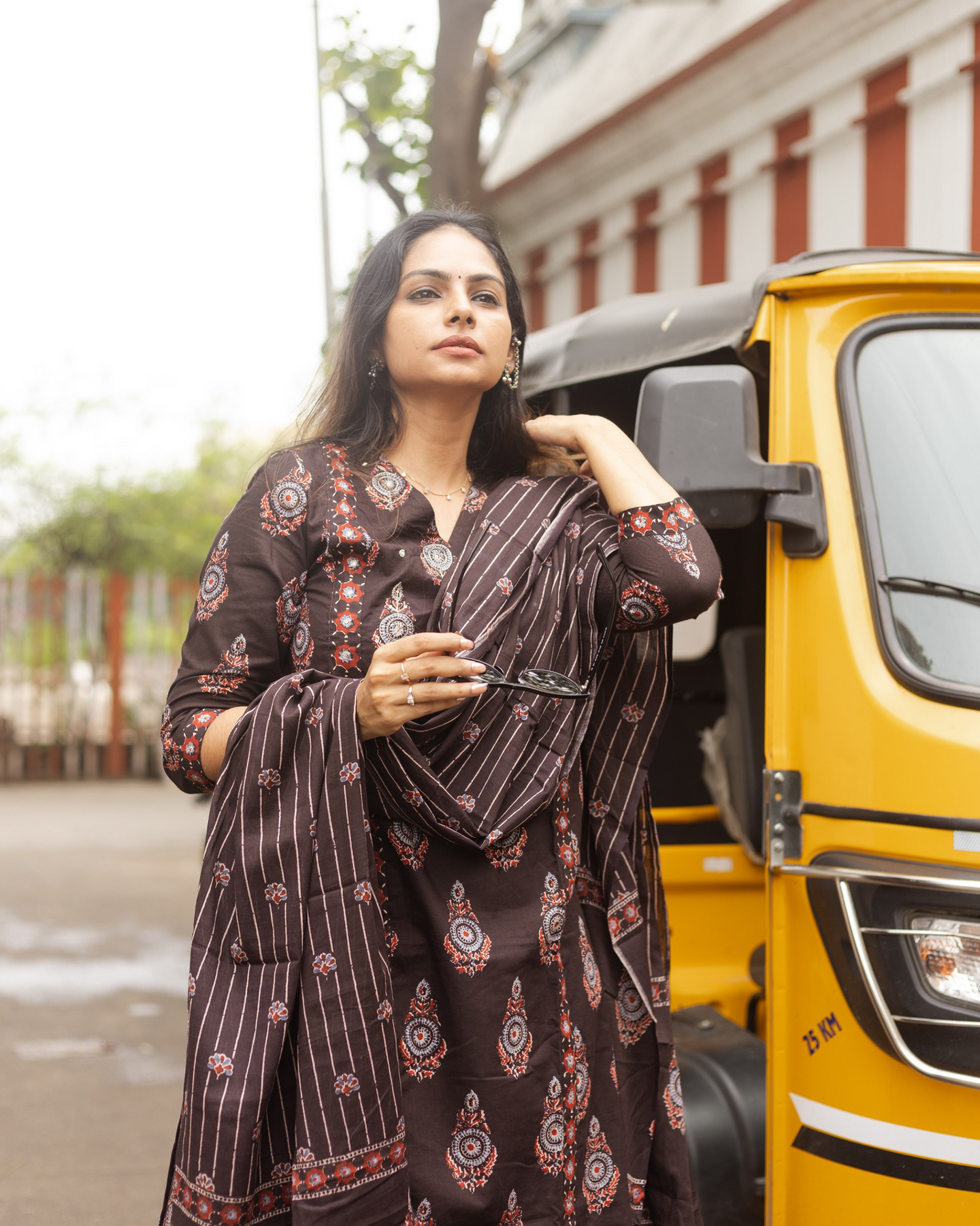 A pure cotton hand-block printed salwar set. Designed for everyday wear, this cotton set comes with a intricate embroidery work that adds elegance to the overall look. The breathable cotton fabric keeps you comfortable all day.