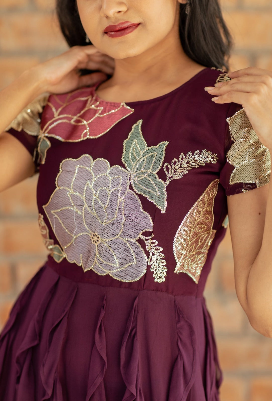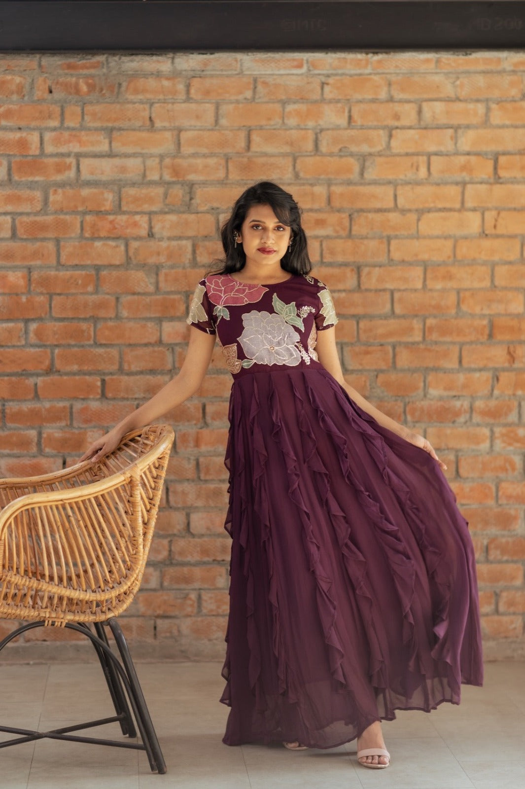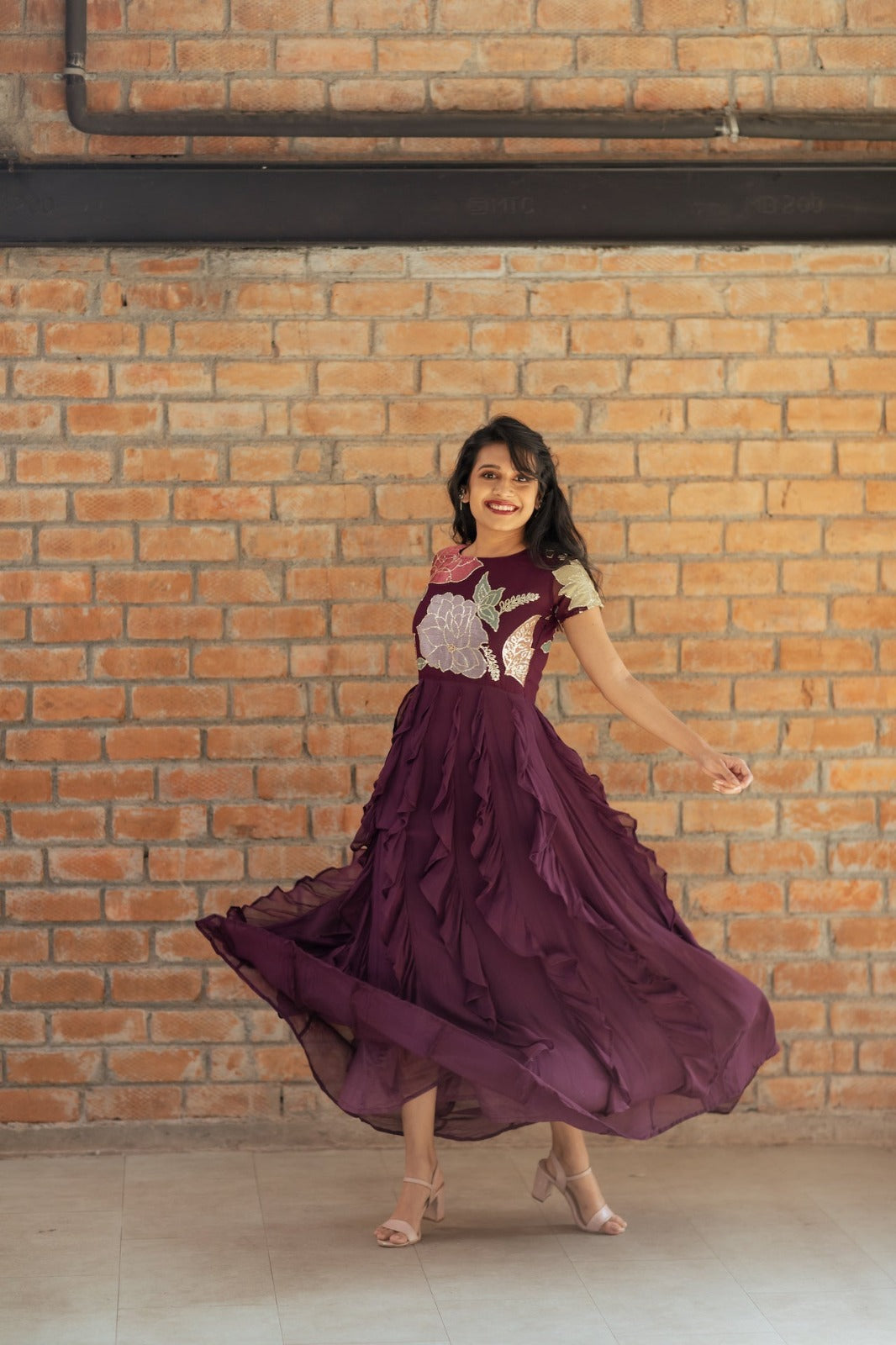 This flouncy, frilly ruffle dress in purple is easy to style and totally wearable. Beautiful, light and soft - this outfit is perfect for your date night or cocktail party and is sure to make heads turn. Lining provided.