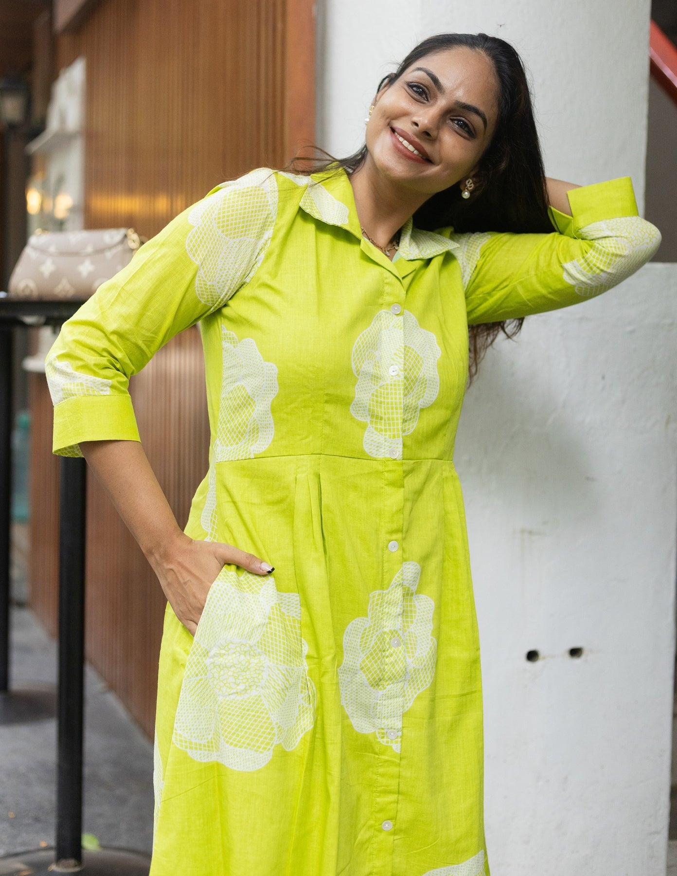 Designed with comfort and style in mind, this dress features a beautiful floral pattern and collar, making it perfect for cooler days or evenings.
