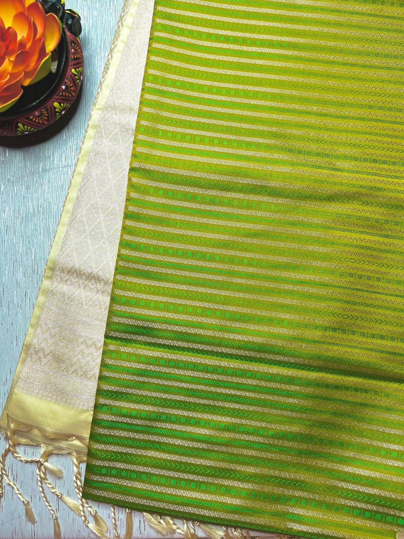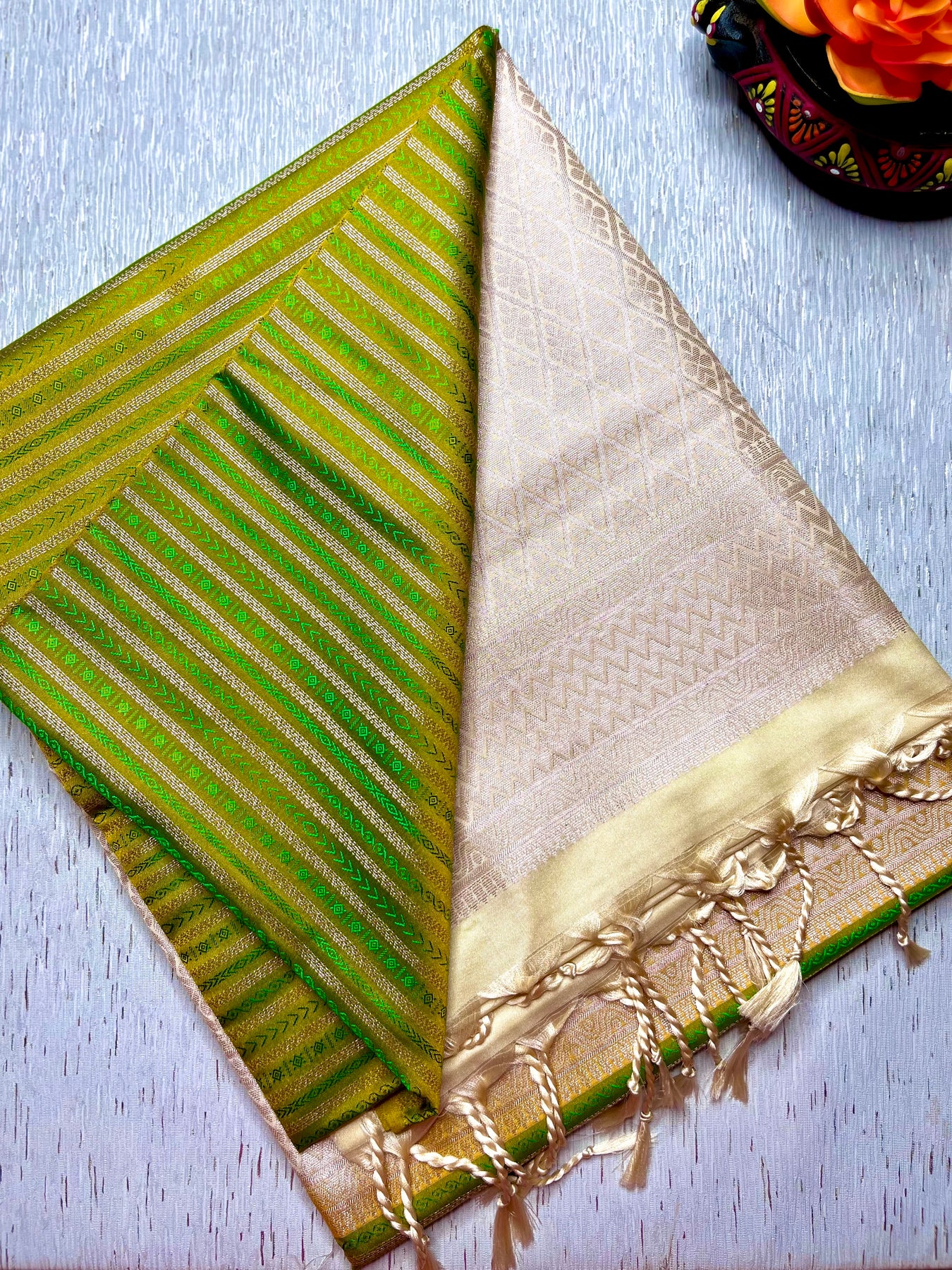 Soft Silk Saree  - Olivetone+ Mist Cream