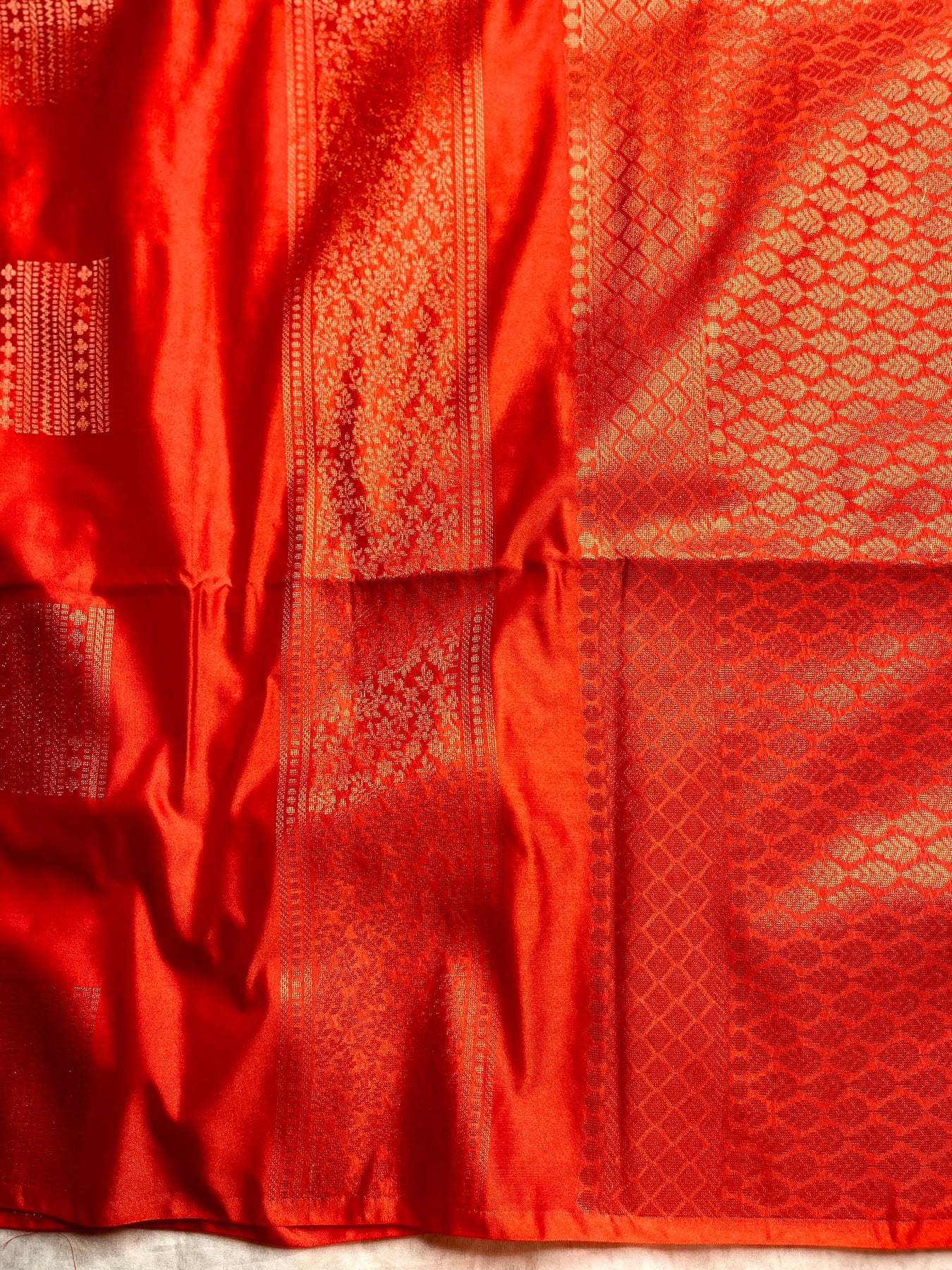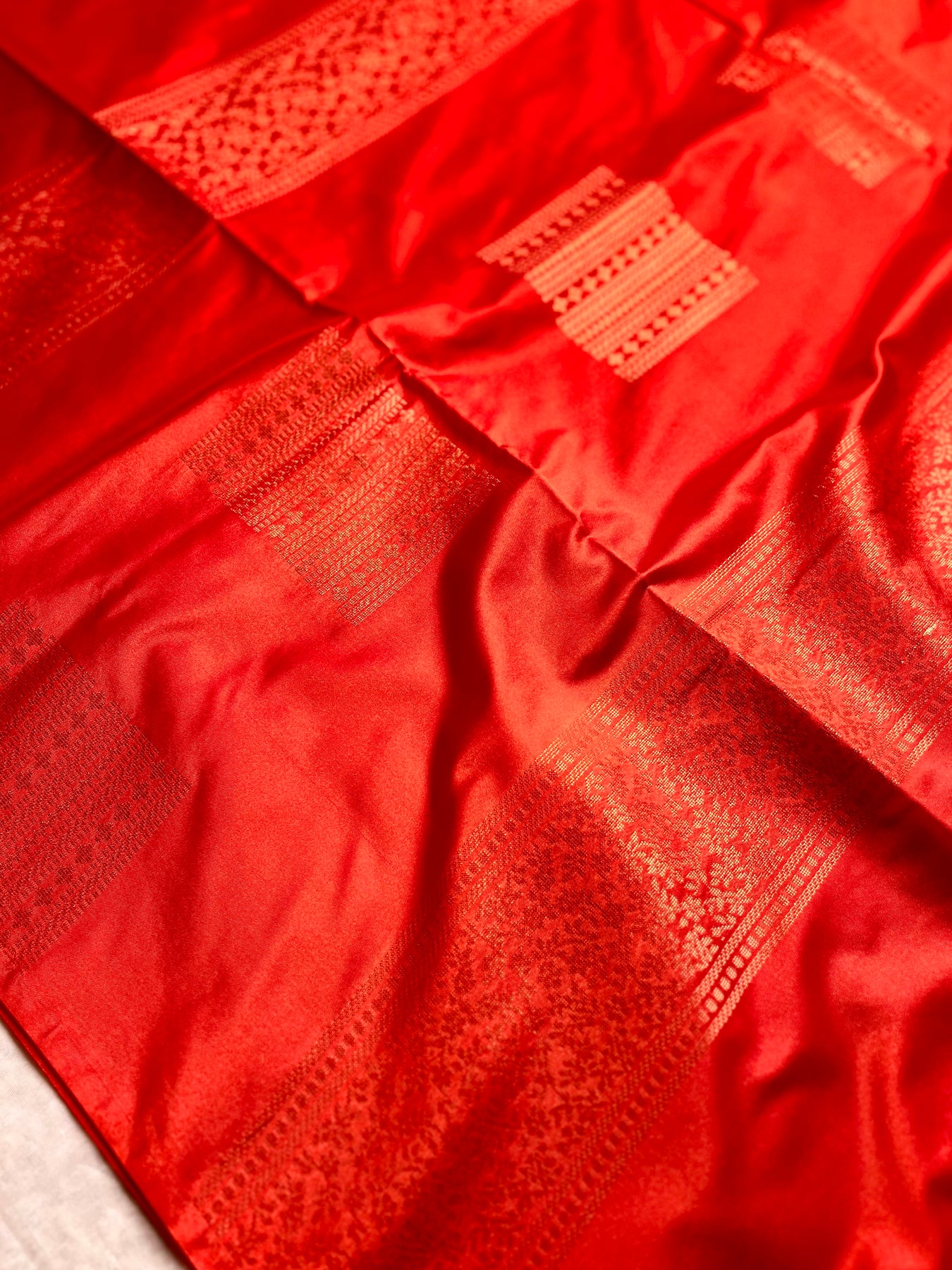 Drape yourself in elegance with this exquisite Kanchi Soft Silk Saree in a stunning spicy red color, featuring delicate geometric pattern all over the body. The graceful contrast zari pallu adds a touch of grandeur, perfectly paired with spicy red color blouse. A timeless piece that blends tradition with sophistication, perfect for festive and special occasions.